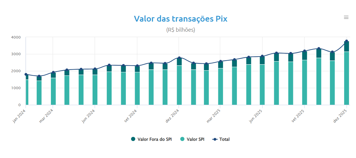 Sucesso absoluto entre os brasileiros e novamente alvo de fake news, o Pix teve mais um ano recorde em volume financeiro e quantidade de transações. Em 2025, o sistema de pagamento instantâneo criado pelo Banco Central (BC) somou R$ 35,3 trilhões. O montante representa um crescimento de 33,7% em relação aos R$ 26,5 trilhões do ano anterior. Ao todo, em 2025 foram cerca de 80 bilhões de transações, contra mais de 63 bilhões de transações um ano antes. Os dados estão disponíveis no site do BC.